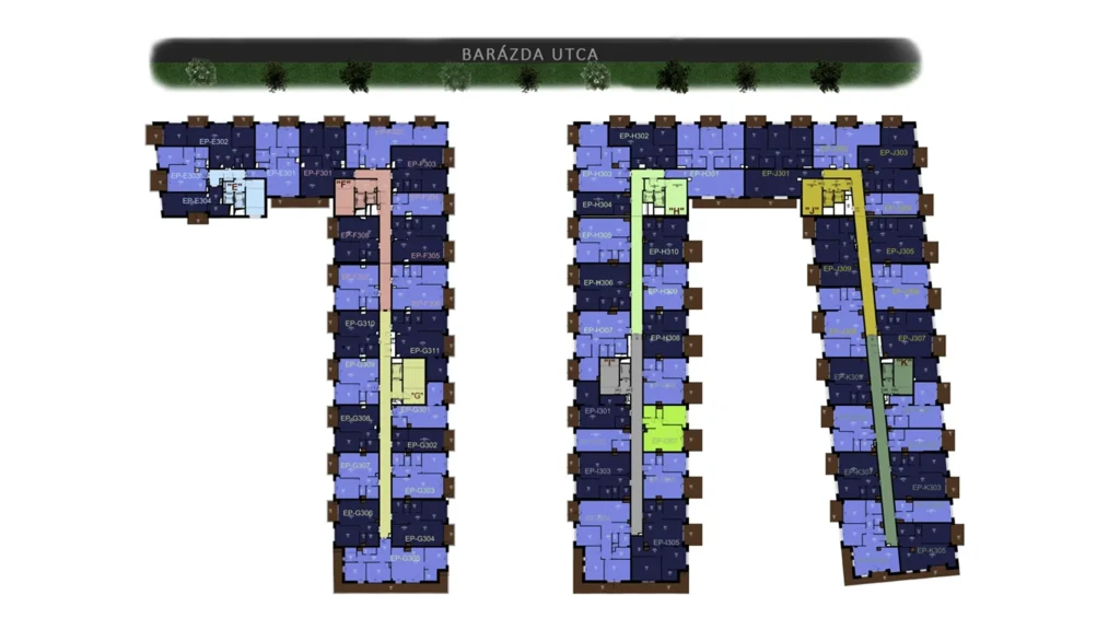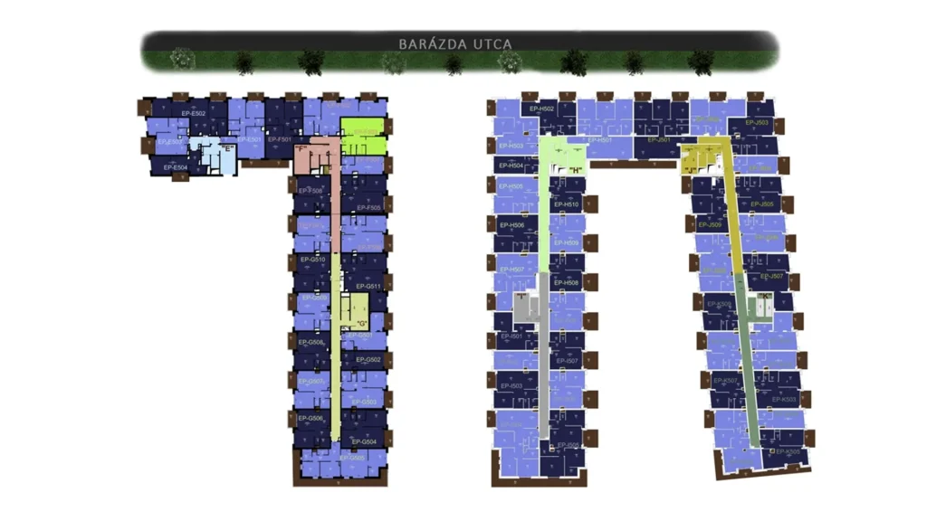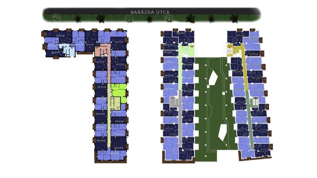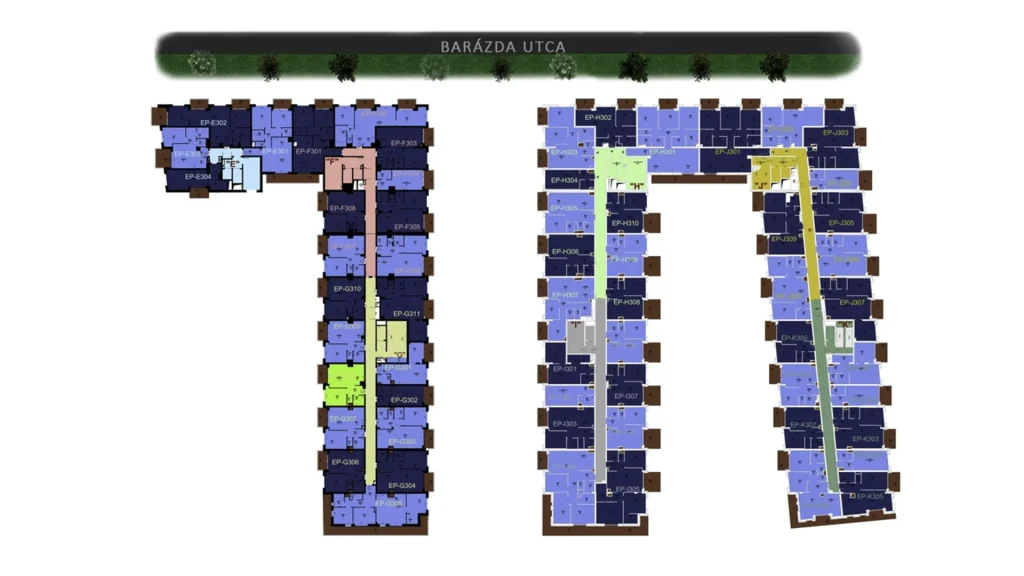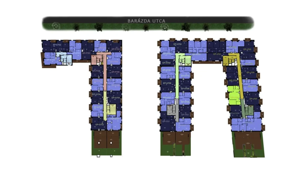 – A lakópark üde színfoltja a városrésznek; különleges, színes homlokzatai, színvilága és hangulata igazodik a környék dinamizmusához.
